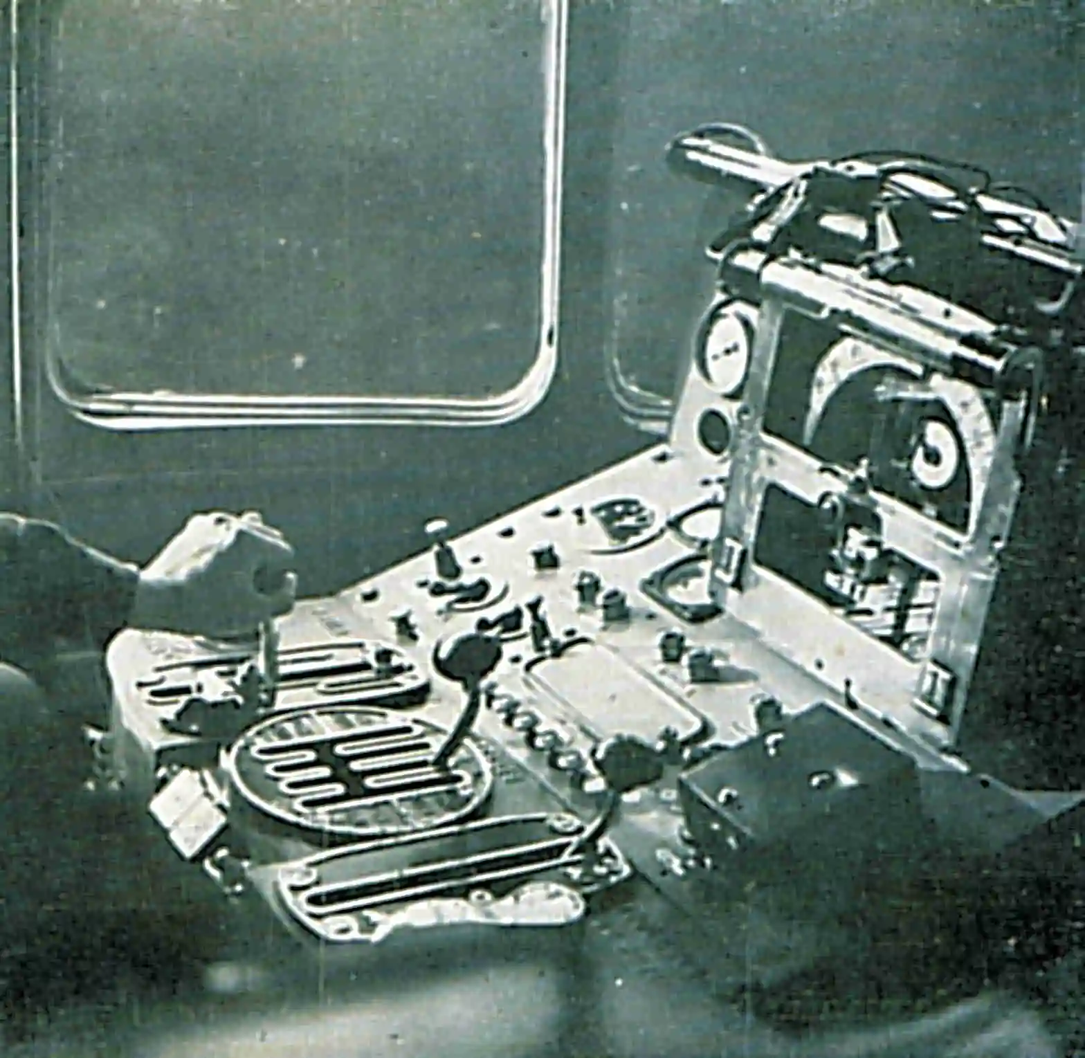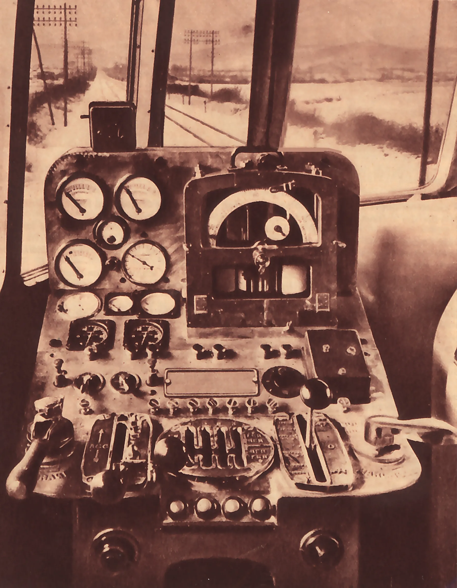 Le massif "piano" tout métal du pupitre de commande trône, de tout son poids, sur le côté gauche de la vaste cabine de conduite, avec, au centre, le puissant moteur qui gronde, vibre, réchauffe l'atmosphère et fait entendre à pleine voix ses innombrables décibels…